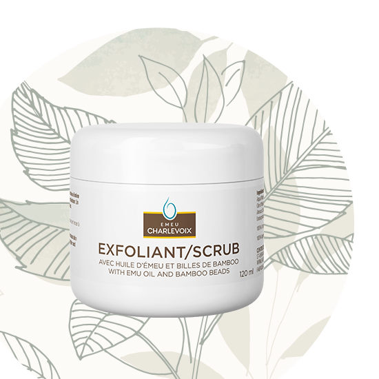 L’exfoliant EMEU CHARLEVOIX est composé d’huile d’émeu, d’argile verte, de cire d’abeille, de billes de bamboo et de vitamine E, entièrement naturel et biodégradable. Un cadeau pour votre corps.